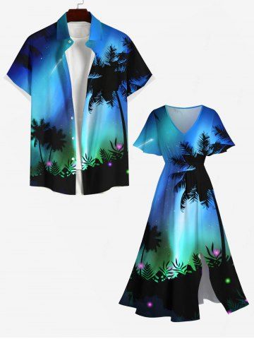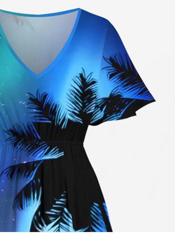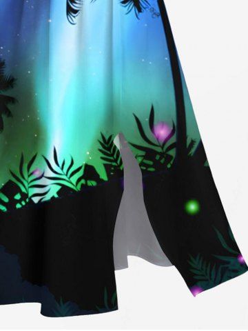 Robes Graphiques > Robe Mi-Longue Hawaïen Ligne A Fendue Cocotier Coloré Imprimé de Grande Taille avec Poche
