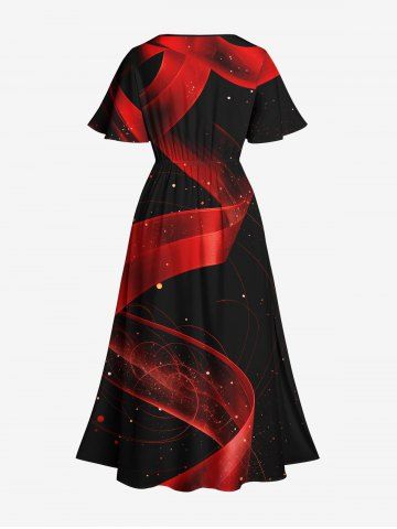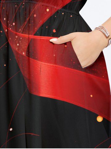 Robe Mi-Longue Hawaïen Ligne A Ombre Galaxie Imprimée avec Poche de Grande Taille - Noir - Noir
