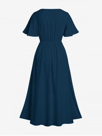 Robe mi-longue hawaïenne à imprimé cachemire et fleurs grande taille avec poches fendues - Bleu Profond - Xxs