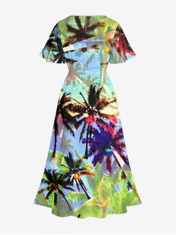Robes Graphiques > Robe mi-longue hawaïenne fendue à imprimé cocotier coloré grande taille