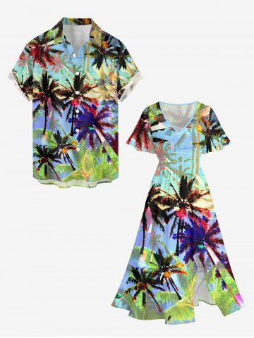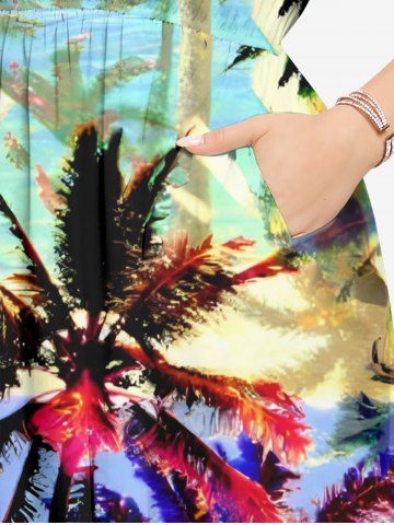 Robes Graphiques > Robe mi-longue hawaïenne fendue à imprimé cocotier coloré grande taille
