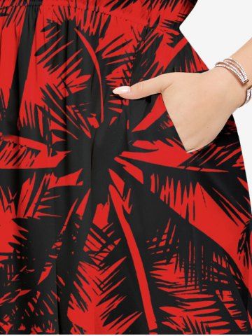 Robe mi-longue hawaïenne fendue à imprimé cocotier grande taille - Rouge - Rouge