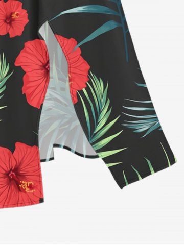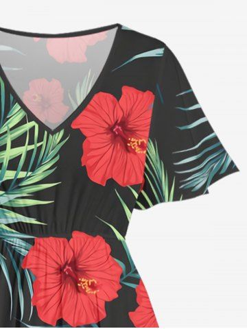 Robe mi-longue hawaïenne fendue à imprimé feuilles tropicales et fleurs d'hibiscus (grande taille) - Noir - Noir