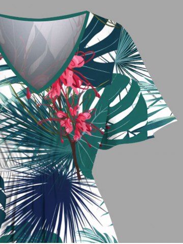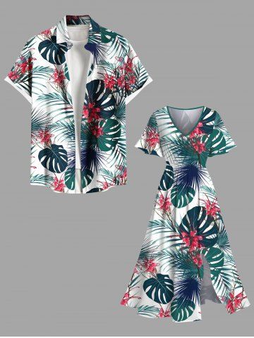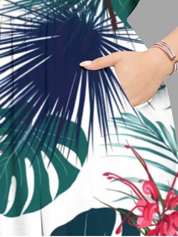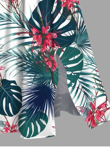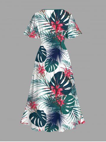 Robes Graphiques > Robe mi-longue hawaïenne fendue à imprimé feuilles tropicales et fleurs grande taille