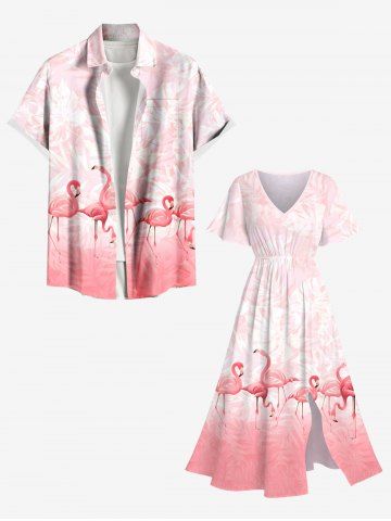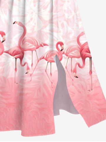 Robe mi-longue hawaïenne fendue à imprimé flamant rose tropical et feuilles ombrées, grande taille - Rose Clair - Rose Léger