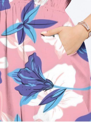 Robe mi-longue hawaïenne fendue à imprimé fleurs d'hibiscus tropical grande taille - Rose Clair - Rose Léger