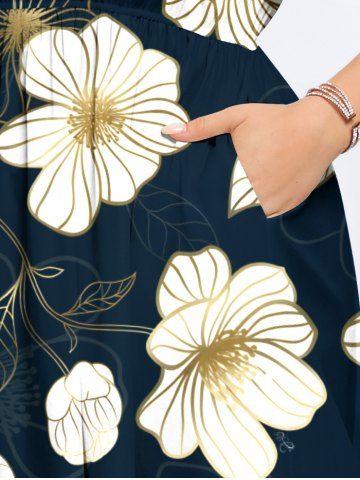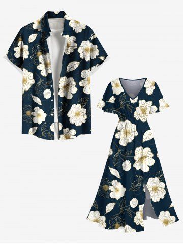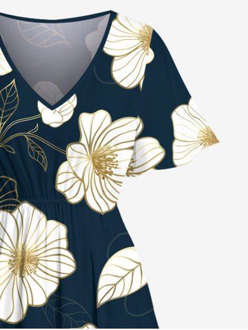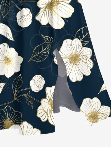 Robes Graphiques > Robe mi-longue hawaïenne fendue à imprimé fleurs et feuilles grande taille