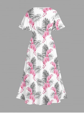 Robes Graphiques > Robe mi-longue hawaïenne fendue à imprimé floral et feuilles grande taille