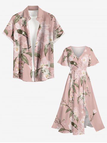 Robe mi-longue hawaïenne fendue à imprimé floral et feuilles grande taille - Rose - Rose
