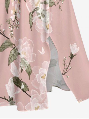 Robe mi-longue hawaïenne fendue à imprimé floral et feuilles grande taille - Rose - Rose