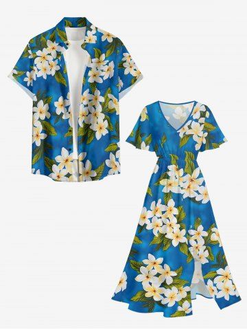 Robes Graphiques > Robe mi-longue hawaïenne fendue à imprimé floral et feuilles grande taille