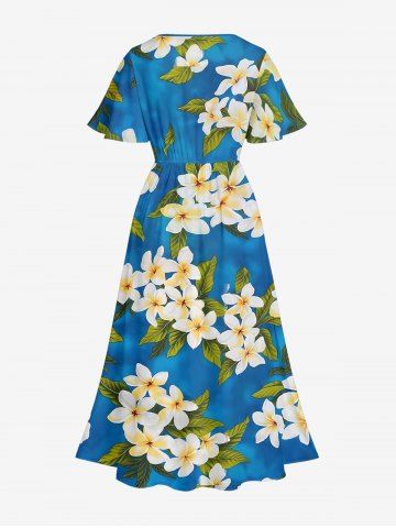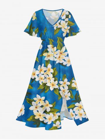 Robes Graphiques > Robe mi-longue hawaïenne fendue à imprimé floral et feuilles grande taille