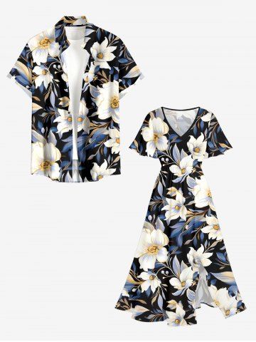 Robes Graphiques > Robe mi-longue hawaïenne fendue à imprimé floral et feuilles grande taille
