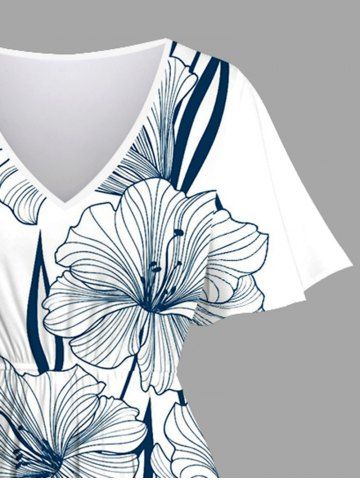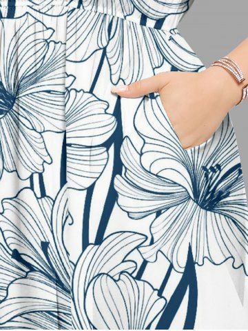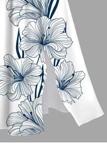 Robe mi-longue hawaïenne fendue à imprimé hibiscus grandes tailles - Blanc - Blanc