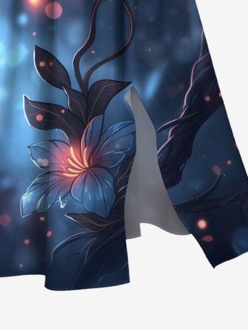 Robe mi-longue hawaïenne fendue à imprimé pois et fleurs d'hibiscus grande taille - Bleu Profond - 3x