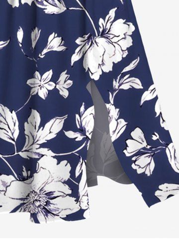 Robe mi-longue hawaïenne fendue à imprimé tropical et fleurs grande taille - Bleu Profond - 6x
