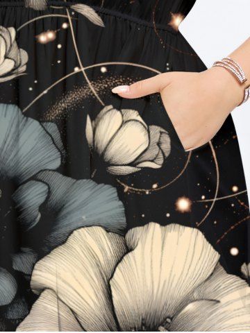 Robe mi-longue hawaïenne fendue grande taille à imprimé 3D de fleurs et de feuilles scintillantes - Noir - Noir