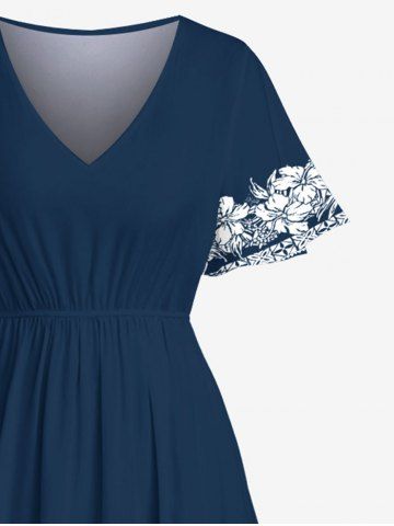 Robe mi-longue hawaïenne fendue grande taille à imprimé feuilles tropicales et fleurs d'hibiscus - Bleu Profond - 5x