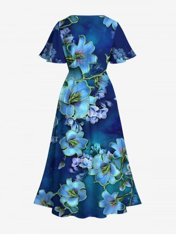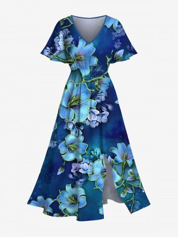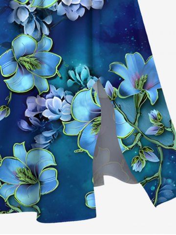 Robe mi-longue hawaïenne grande taille à imprimé fleurs d'hibiscus ombré et poches fendues - Bleu - Bleu