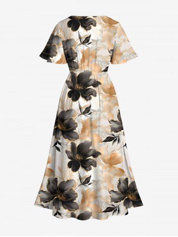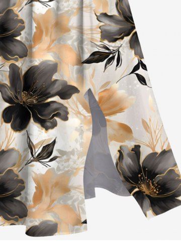 Robe mi-longue hawaïenne grande taille à imprimé floral ombré et poches fendues - Café Lumière - 6x