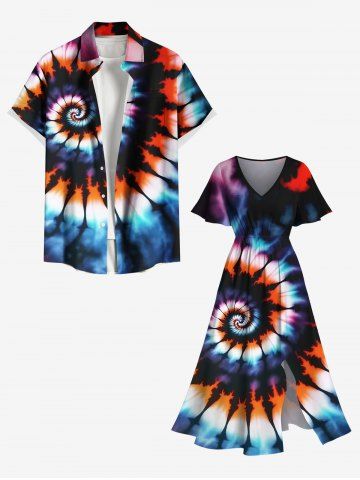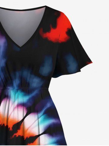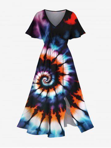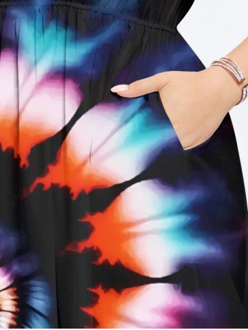 Robe Mi-longue Tie-Dye Imprimée Colorée Grande Taille avec Poche - Multi - Multi