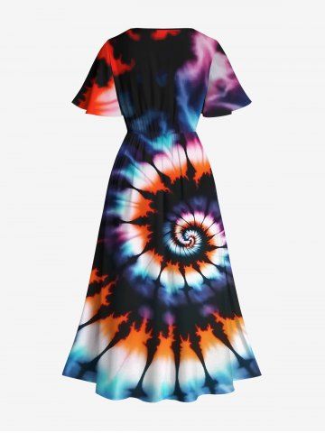 Robe Mi-longue Tie-Dye Imprimée Colorée Grande Taille avec Poche - Multi - Multi