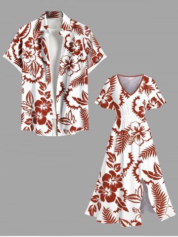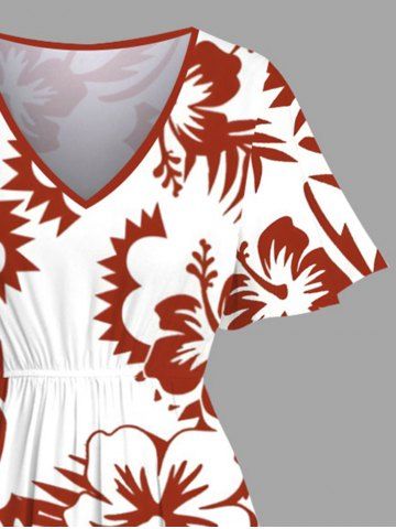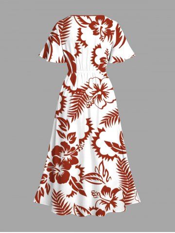 Robe mi-longue trapèze grande taille à imprimé feuilles tropicales et fleurs d'hibiscus hawaïennes avec poches fendues - Blanc - Blanc