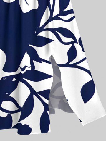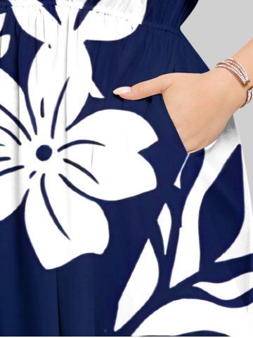 Robes Graphiques > Robe mi-longue trapèze hawaïenne à imprimé bicolore contrasté, grande taille, avec poches fendues et motif floral et branches