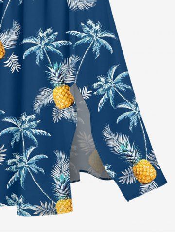 Robe midi fendue hawaïenne à imprimé ananas et cocotier grande taille - Bleu Profond - 1x