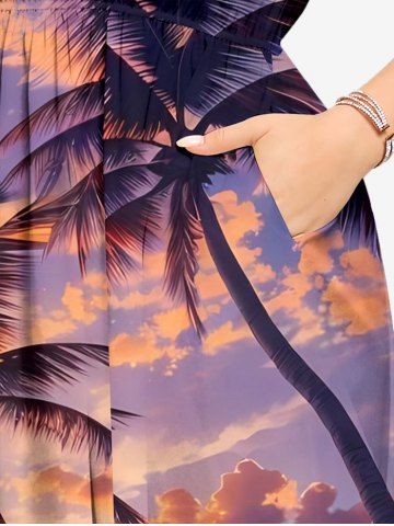 Robes Graphiques > Robe midi fendue hawaïenne à imprimé cocotiers et nuages pour grandes tailles