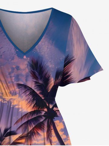 Robe midi fendue hawaïenne à imprimé cocotiers et nuages pour grandes tailles - Bleu Ciel - Bleu Ciel