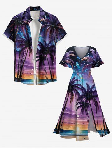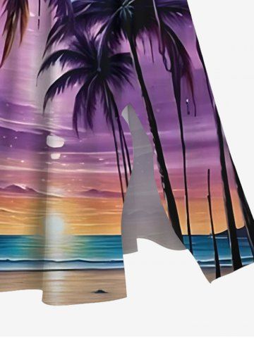 Robe midi fendue hawaïenne à imprimé galaxie, cocotier et paysage marin, grande taille - Pourpre - Pourpre