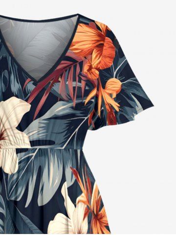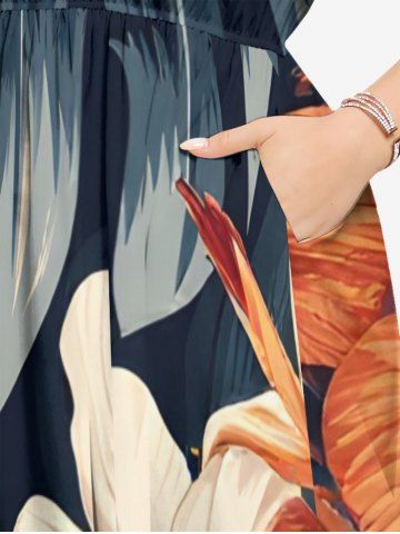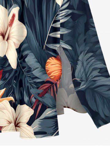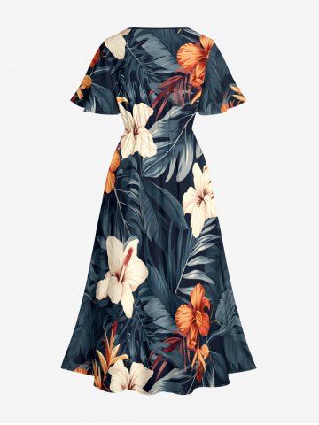 Robes Graphiques > Robe midi hawaïenne fendue à imprimé feuilles tropicales et fleurs d'hibiscus (grande taille)