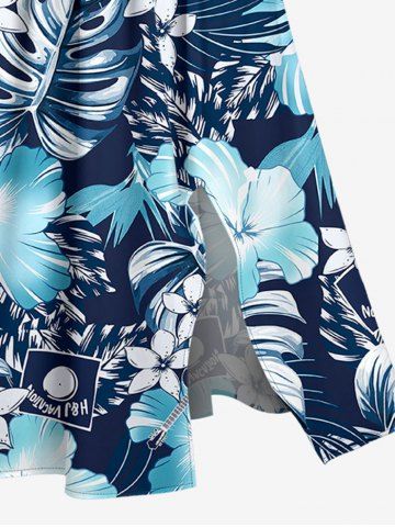 Robe midi hawaïenne fendue à imprimé feuilles tropicales et fleurs d'hibiscus (grande taille) - Bleu Profond - 2x
