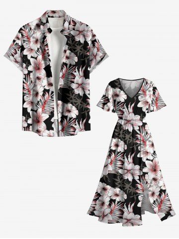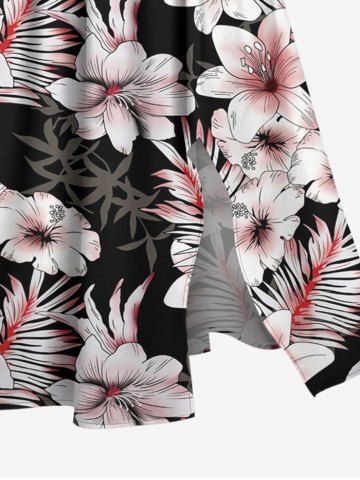 Robe midi hawaïenne fendue à imprimé tropical fleurs et feuilles, grande taille - Noir - Noir