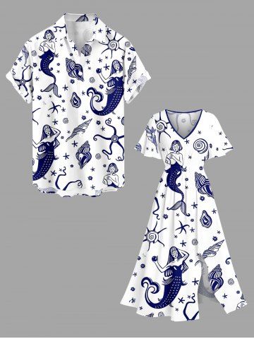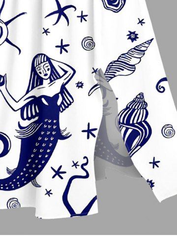 Robe midi trapèze grande taille à imprimé coquillage sirène et conque, style hawaïen, avec poches fendues - Blanc - Blanc