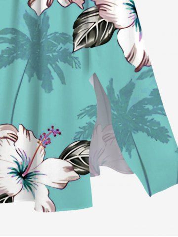 Robe midi trapèze grande taille à imprimé feuilles et fleurs de cocotier, style hawaïen, avec poches fendues - Turquoise Foncée - Xs