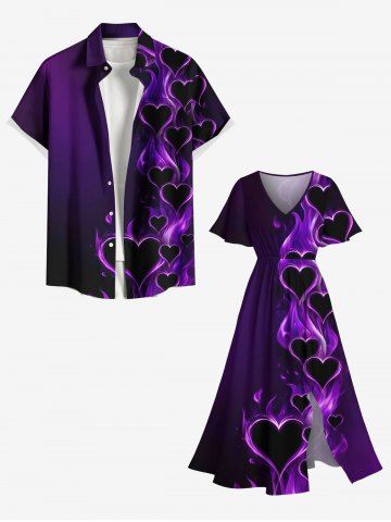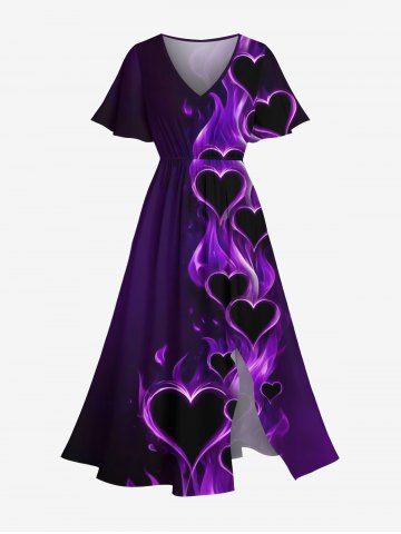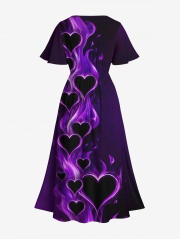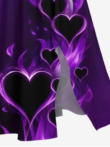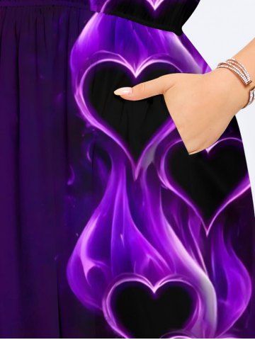 Robes Graphiques > Robe midi trapèze grande taille à imprimé flammes et cœurs, style hawaïen, avec poches fendues.