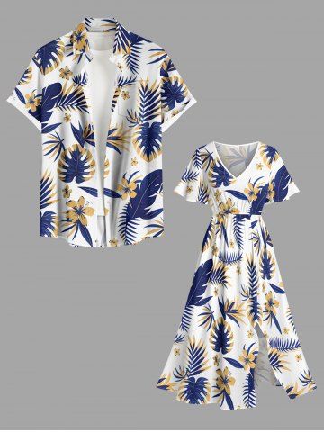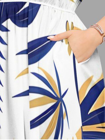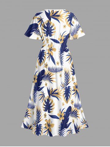 Robe midi trapèze grande taille à imprimé floral tropical et hibiscus, style hawaïen, avec poches fendues - Blanc - Blanc