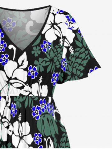 Robe midi trapèze grande taille à imprimé floral tropical et hibiscus, style hawaïen, avec poches fendues - Vert Profond - Xxs