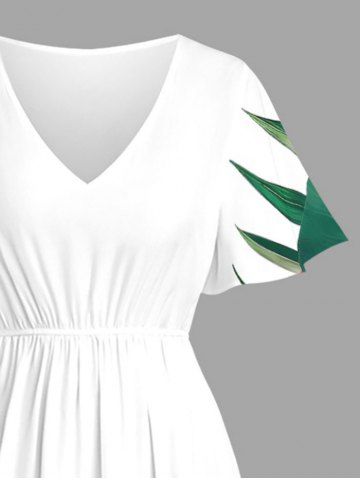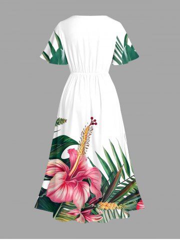 Robe midi trapèze grande taille à imprimé floral tropical et hibiscus, style hawaïen, avec poches fendues - Blanc - Blanc