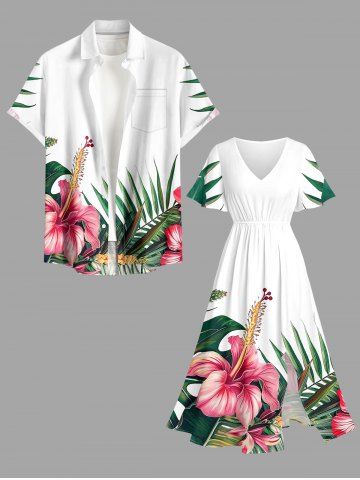 Robe midi trapèze grande taille à imprimé floral tropical et hibiscus, style hawaïen, avec poches fendues - Blanc - Blanc