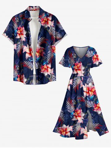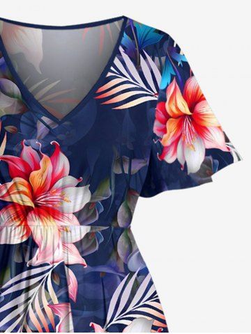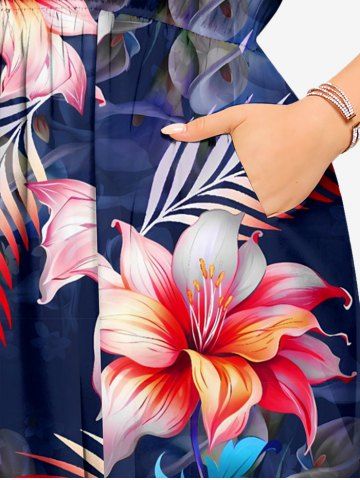 Robes Graphiques > Robe midi trapèze grande taille à imprimé floral tropical hawaïen et poches fendues