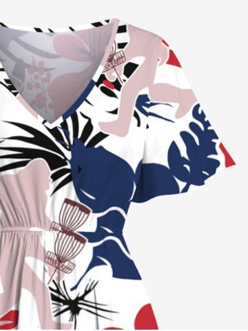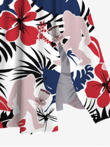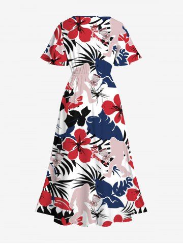 Robe midi trapèze grande taille à imprimé gorille, feuilles tropicales et hibiscus, fleurs et gorille, style hawaïen, avec poches fendues - Blanc - Blanc