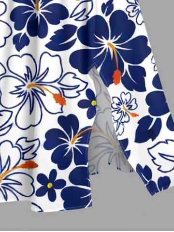 Robe midi trapèze grande taille à imprimé hibiscus et poches fendues, style hawaïen - Bleu Profond - 3x