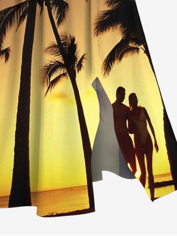 Robe midi trapèze grande taille à imprimé ombré crépusculaire, style hawaïen, avec poches fendues et cocotiers. - Jaune - Jaune