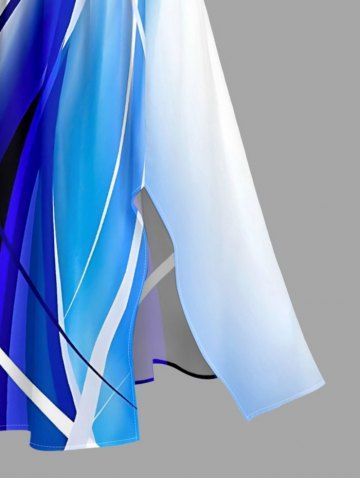 Robe midi trapèze grande taille à imprimé ombré et poches fendues, style hawaïen - Bleu - Bleu