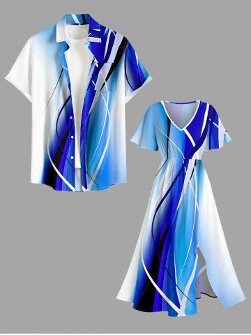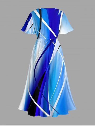 Robe midi trapèze grande taille à imprimé ombré et poches fendues, style hawaïen - Bleu - Bleu