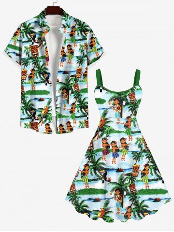 Robes Graphiques > Robe Ouvertes sur le Noir et Montre avec Imprimé Perroquets Style Ethnique Grande-Taille pour Filles