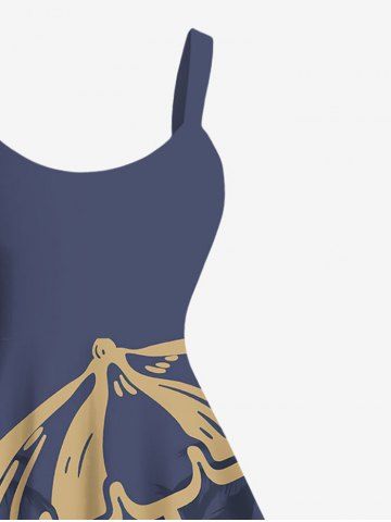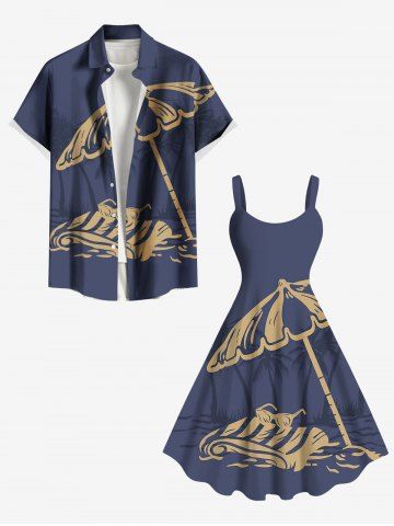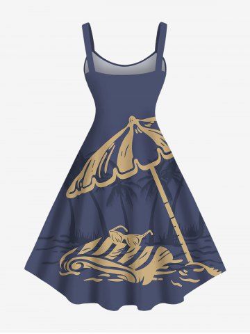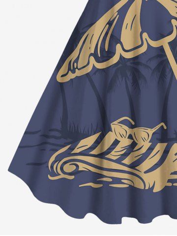 Robe Parapluie Ligne A Cocotier et Soleil Imprimés de Plage de Grande Taille - Bleu Profond - M